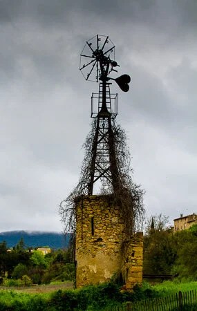 Spent the afternoon driving around the area. The clouds finally began to lift as we drove home past Chateau La Dorgonne so stopped in and picked up two bottles of the pinot noir that we had enjoyed on Saturday night. Sunset left us hopeful, not exactly red sky at night but sufficiently rose coloured that we have great hopes for Wednesday, our last day here. Dinner was at Numero 9 in Lourmarin, a restaurant that our host had recommended. We intended to order simply and sanely and did so. For me a cigar shaped entree of raw salmon wrapped around a very light filling of whipped chevre and herbs and a main of a a rare faux-filet of beef with a sorbet to finish. V had the vegetarian set menu which included one of the the best dishes that she has enjoyed to date, a wonderfully refreshing gazpacho with lightly curried whipped foam floating on top. Very pleasant restaurant and a keeper for our next trip.