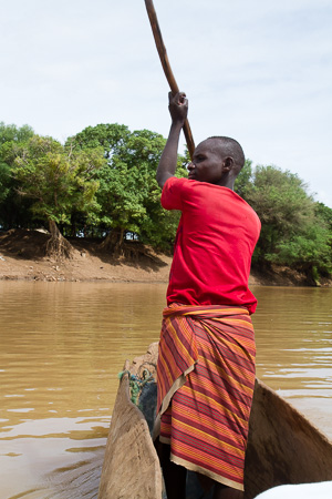 Once arrived in Omarate we crossed the Omo in a dugout canoe carved from a single log, kneeling on the damp muddy bottom and trying not to move too much. The village on the other side was depressing, Hamar people in an enclosure about a 20 minute walk away from the river in high 30’s heat. Tukuls were made of scrap metal and wood and there was a definite feel of trailer park about it, not at all like the other more prosperous Hamar villages that we have visited. Left as soon as it was decently possible.