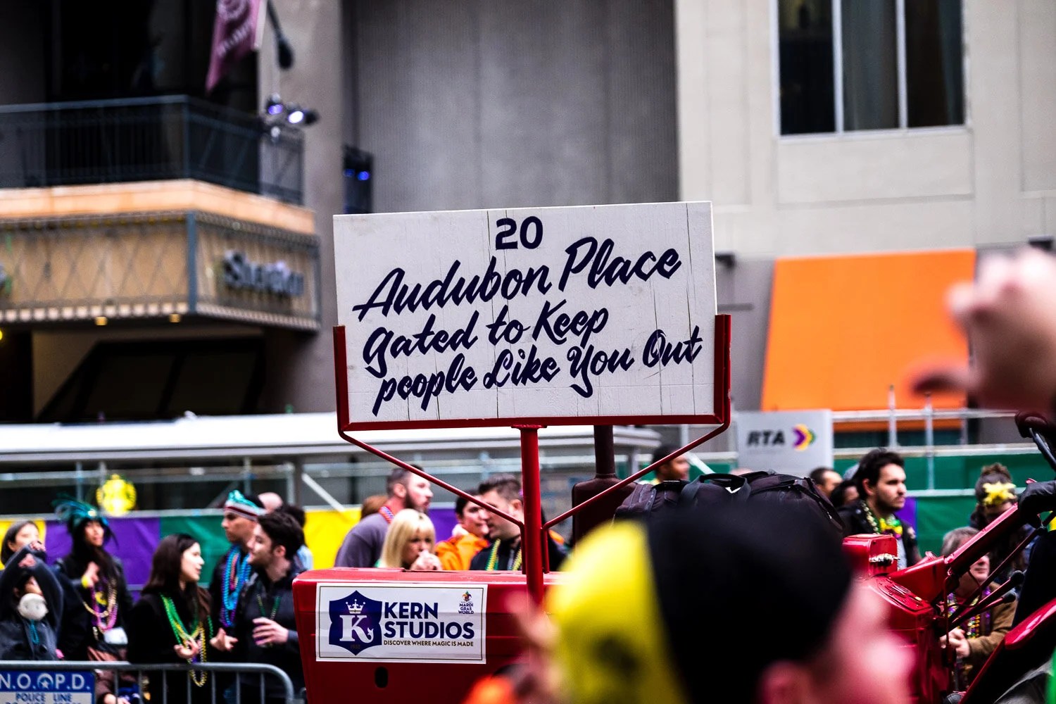 For those of you who have never been here for MG there are, as we came to understand, a number of Krews representing various sections of the city or sectors of industry or society. Each Krew has a name and a patron persona usually taken from Greek or Egyptian mythology and the krews sole purpose for having been founded and for continuing to exist seems to be to party and parade with MG being the party highlight of their year . These parades begin, in some cases, in early January because the calendar is so full with Krews wanting to schedule their parades. As the days draw closer to today, MG the ultimate day, the Krews whose parades are scheduled now are increasingly the more well-known, wealthy and influential. Today there are two parades put on by the two most well-known krews, the first parade beginning at 8 am and the second parade will finish about midnight and then it will be all over for another year.