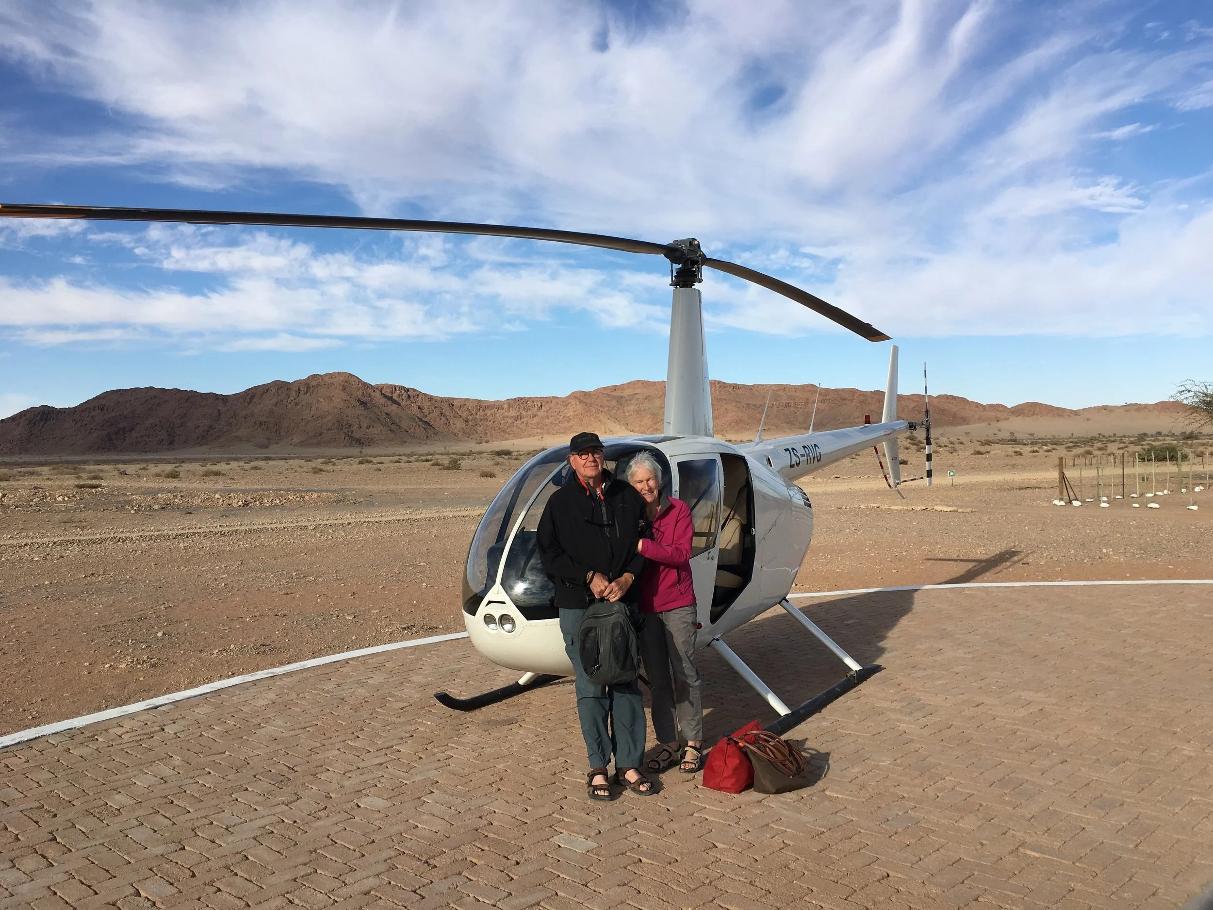 Tough decision to be made to be made today. Tomorrow we leave for Windhoek and then on to Jo’burg and then Jordan. We were told that there was room for us on the balloon tomorrow morning but I had had the lodge look into organizing a helicopter ride to see if we could get some sunrise shots over the dunes. We knew we would be able to get a ride on the balloon but we didn’t know if the winds would keep it on the ground; however the deciding factor was that even if the balloon flew there was no guarantee that it would fly over areas where it would be interesting to photograph. With that in mind we decided to cancel the balloon and commit to the helicopter. Significantly more expensive but we knew we would go independent of winds and we would go where we wanted and not where the wind took us, so up at 5:15am for our ride.