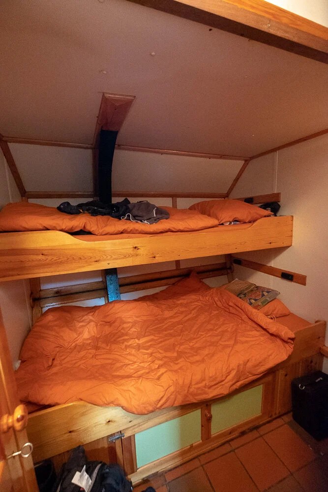 The cabins are small, about 2.5 metres by 3 metres and are designed for 2 people in an upper and lower bunk. I’m extremely fortunate that since we are one person short on the voyage, I have a cabin to myself. I’m infinitely grateful that things worked out this way, can’t imagine how two people could navigate the space and store their kit.