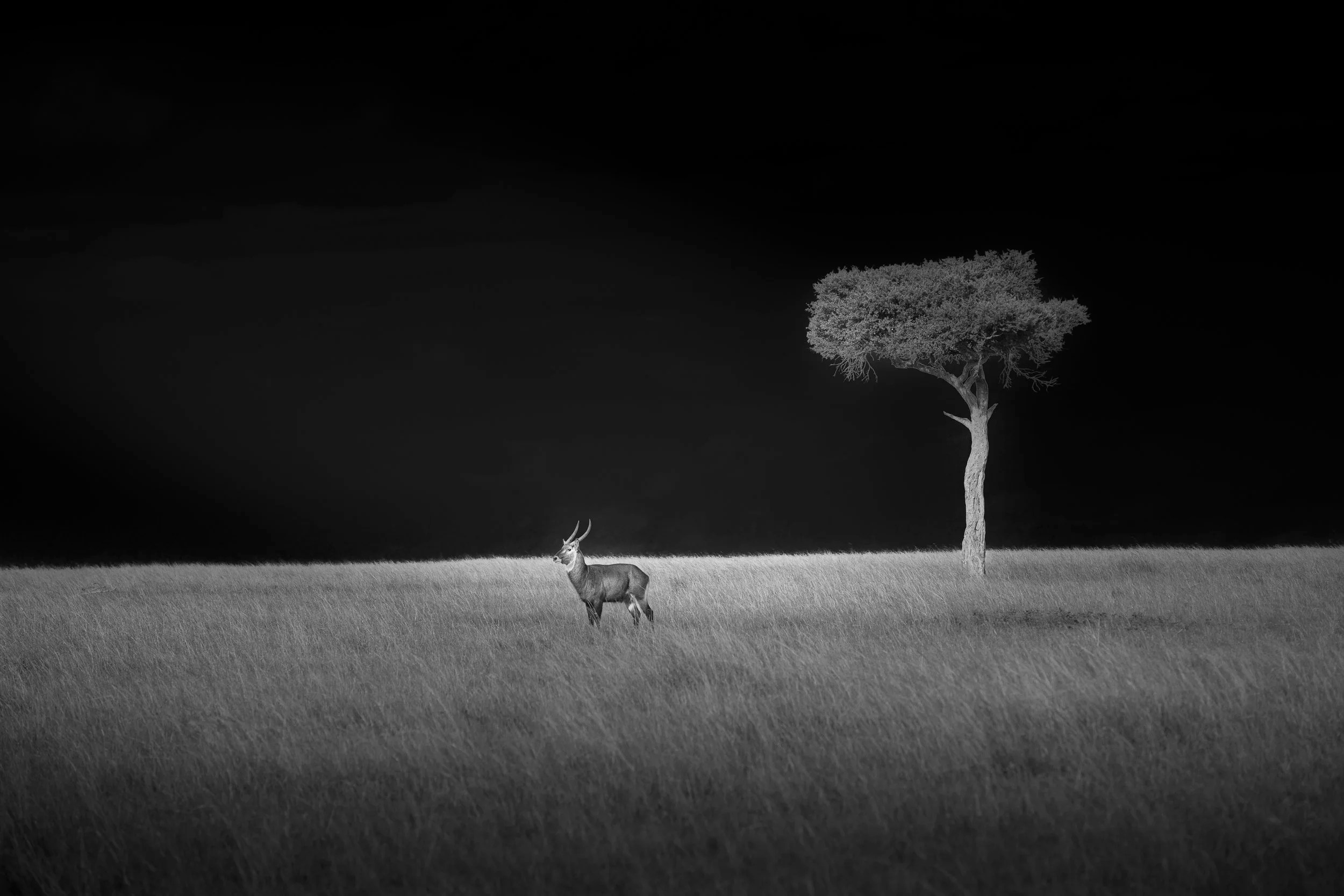Waterbuck with Acacia, Masai Mara, Kenya