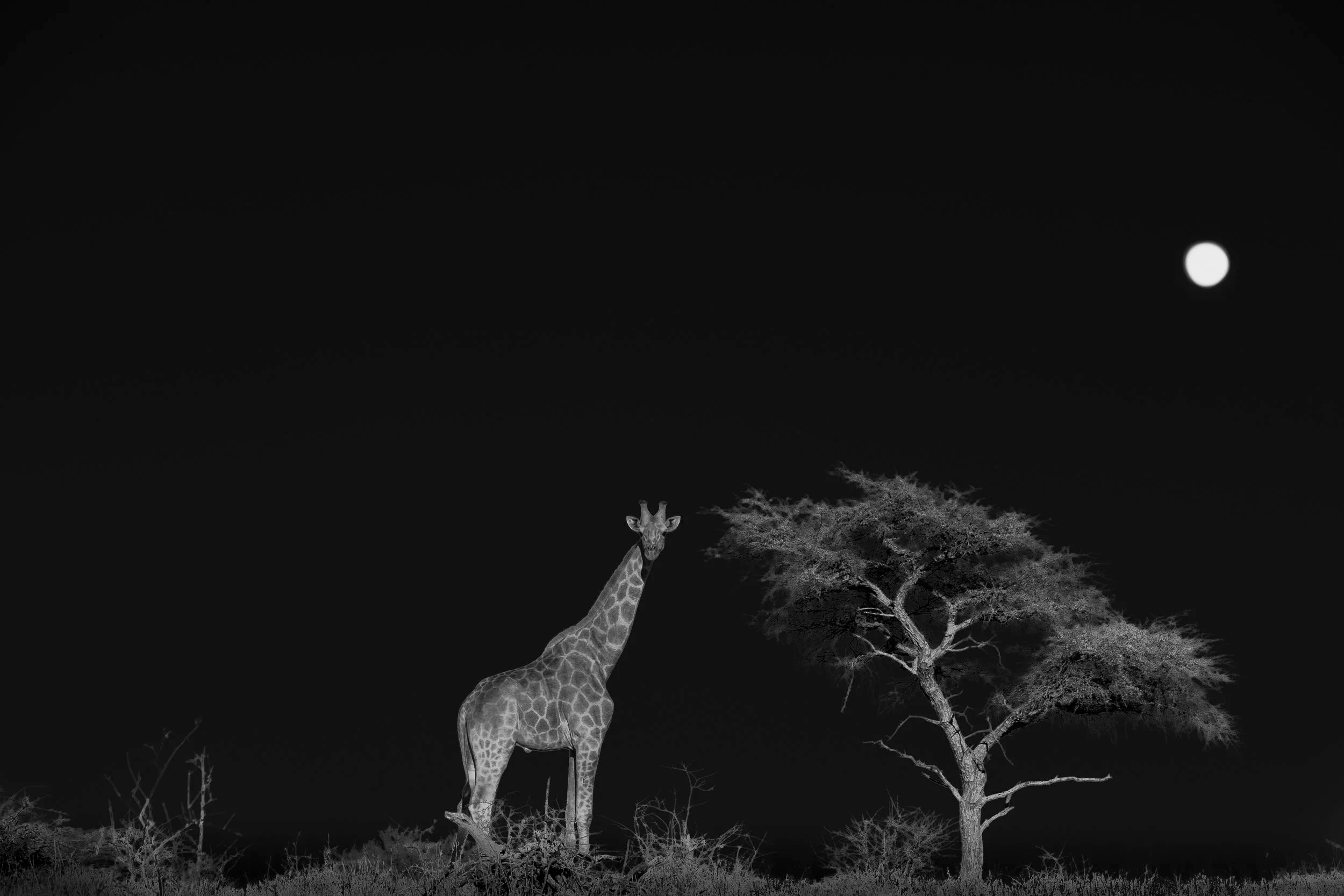 moonlight giraffe, etosha, namibia