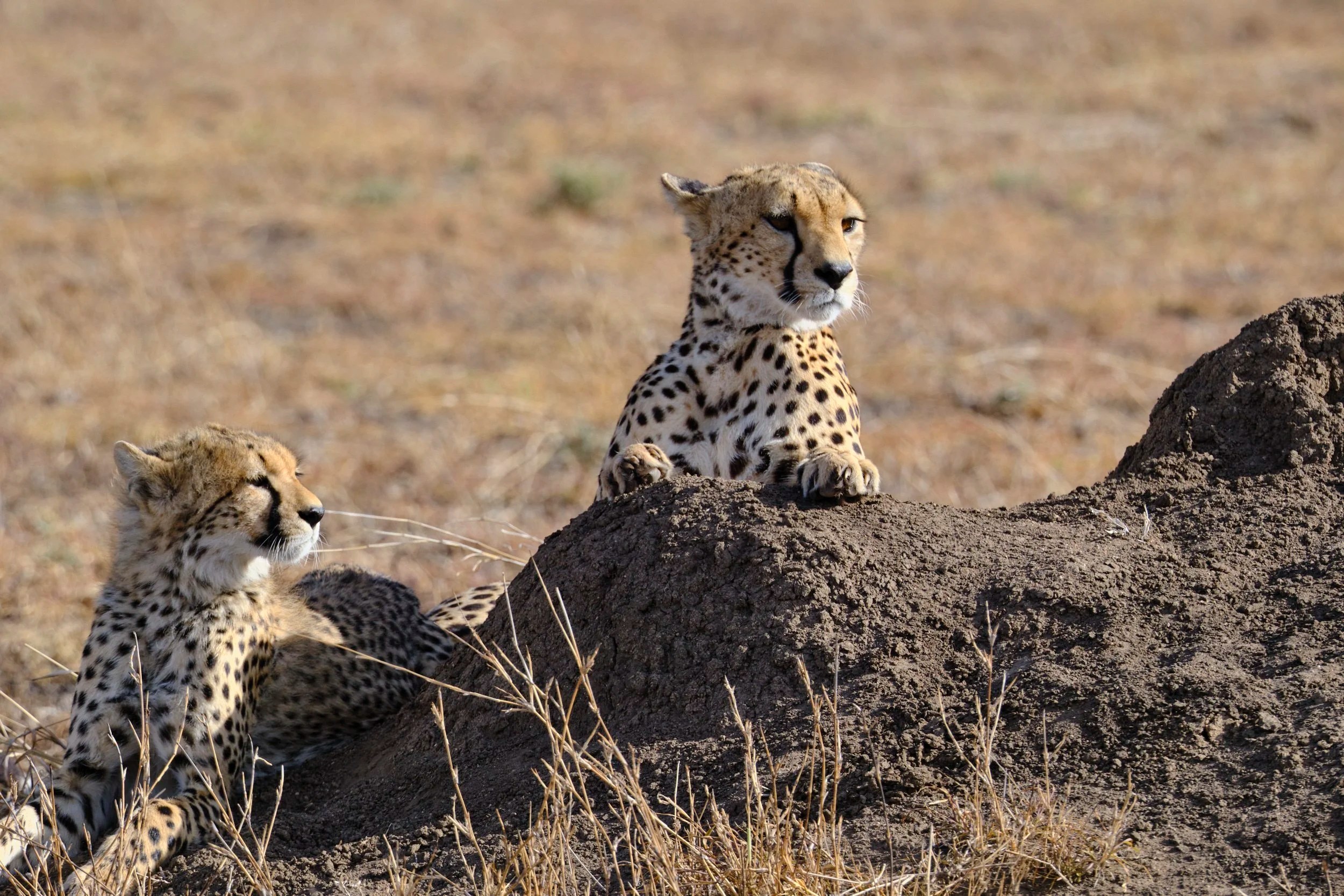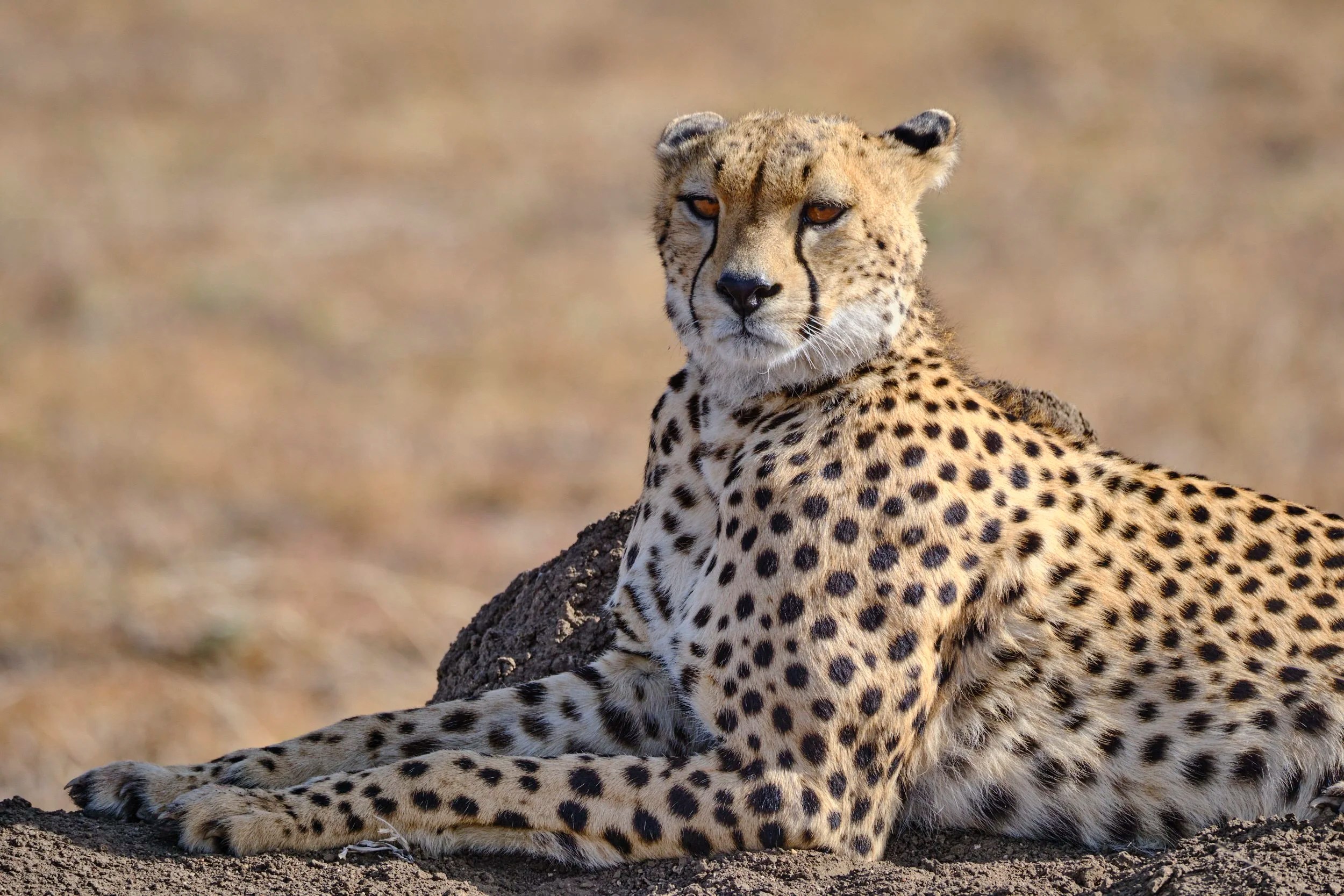 You should know that it is quite usual for brothers, both from the same litter and across litters, to come together and form coalitions which provide more security, cheetahs are after all the prey of lions, leopards and hyenas, as well as significantly improving their hunting capability. These coalitions can be very long lasting, life-long in many cases. I’m sure a few of my readers will remember our last trip to Kenya and the Masai Mara in 2018 when we followed, at times with a BBC film crew, a coalition of 5 brothers who hunted in the Mara as well as across the border into Tanzania. They were very well-known, hence the film crew, and were the offspring of a very famous mother, Malika, who I also wrote about at that time. She was an extremely capable, very intelligent cat who, unusually, survived after being left as an orphan and grew up into cheetah with a very strong personality and character. We had seen her on earlier trips to the Mara and I had the very sad honour of having taken her last photo. Shortly after we last saw her, it turned out to be a couple of hours before she died, I was able to get a shot of her. She was last seen attempting to cross a river swollen by a heavy downpour and was washed away. She was never found. Both V and I were very upset when we got the news; such is the hold that cheetah have on those of us who admire them.