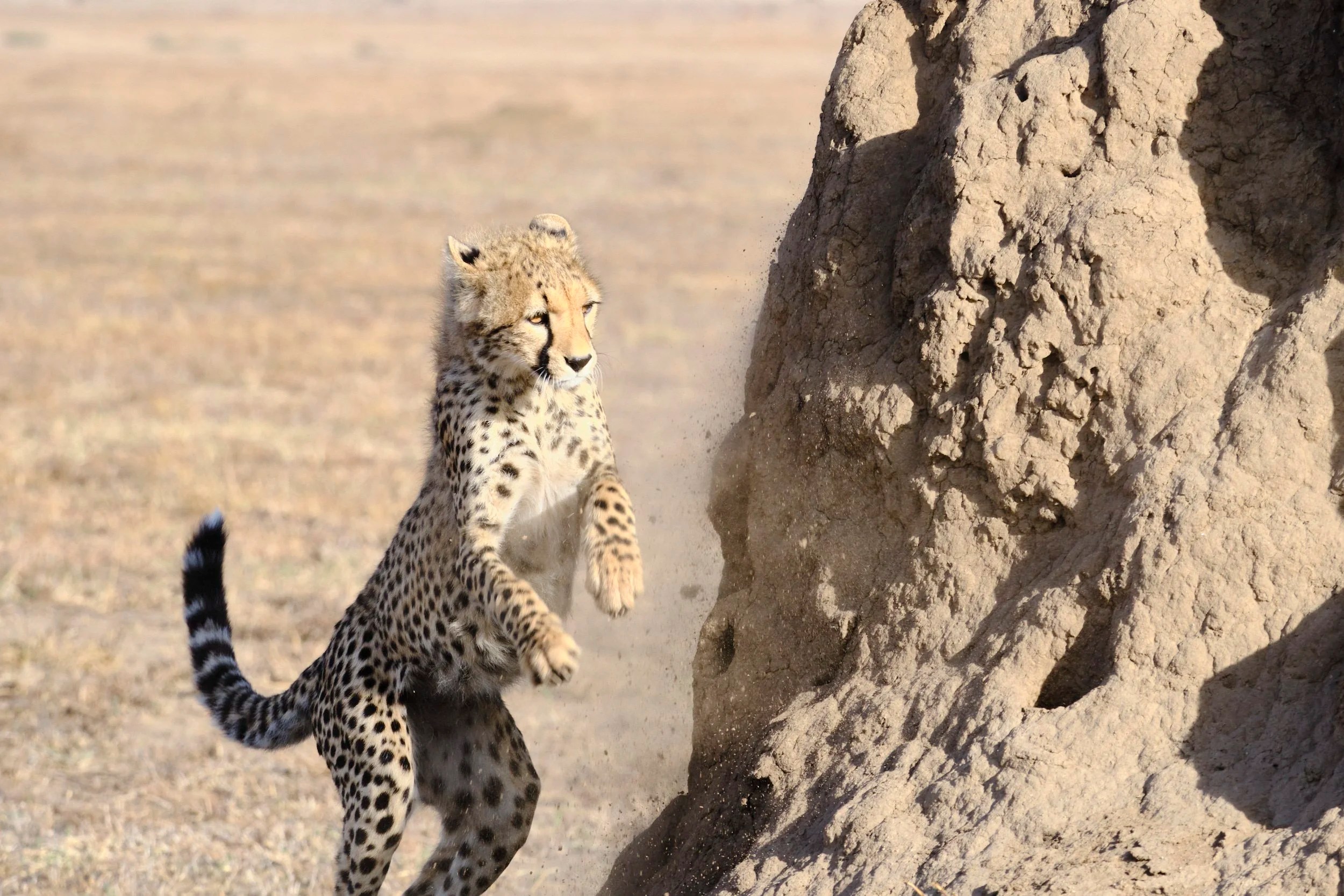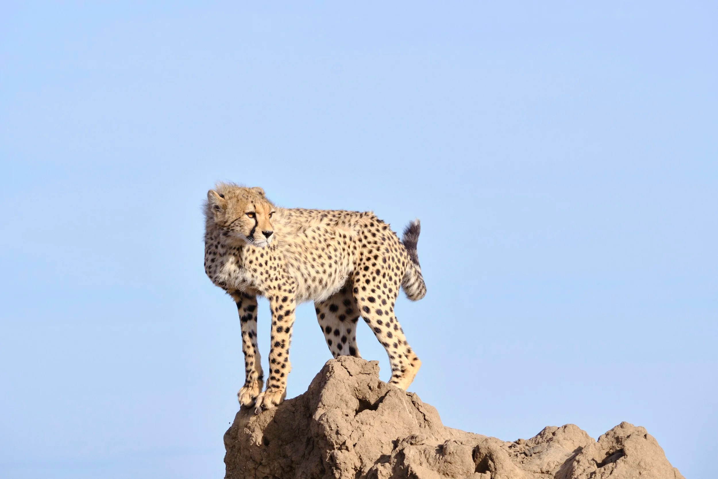 Cheetahs don’t climb trees but this is one of the two cheetah boys from 10 years ago on a sociable weavers nest